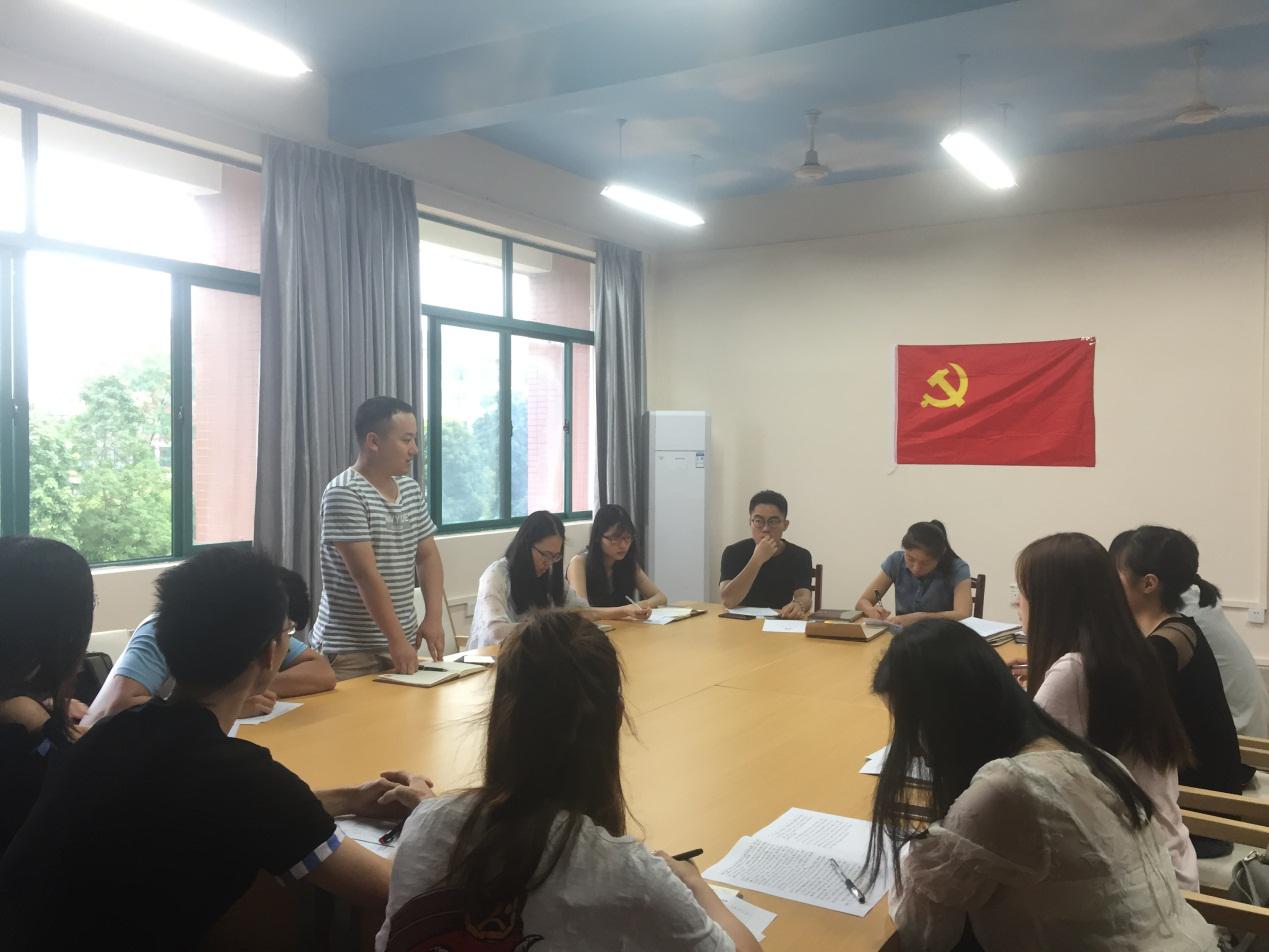 6月12日,太阳集团城网站2017研究生第二党支部在雁山校区02306会议室召开支部大会。会议由支部书记殷敏老师主持,支部全体党员参加。支部共有党员12人,大会应到有表决权的正式党员10名,因事请假1名,实到9名。本次会议讨论了预备党员吴智亮同志转正事项,讨论了接收贺朝双、陶彦妤、杨禄、叶苏娴四名同志为预备党员事项。